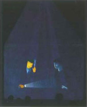 Between 1957 and 1961, he attended the Architecture and Painting courses at the Fine Arts School of Lisbon. In 1958 he took up printing at the SCGP. In 1961 he moved to Paris, but in the period from 1965 to 1971 he would regularly spend time at Vieira da Silva's studio. After 13 years away from home, Martins briefly visited Portugal; and after a short stay in New York, he returned to Paris in 1976. In 1991, no less than 30 years after he left, the artist returned to his home country. ¶ In the turn of the 50s and the 60s, Martins began as an heir to the then-called "abstract neo-impressionism". He would soon, however, break away from the "wistful abstractionism", taking on a "neo-figurativism" that puts across a very peculiar, intimate dimension. ¶ The 60s, which witness in Martins a growing economy of simplicity, are a key point in time in terms of the artist's recognition. Light will become the unifying element of the artist's explorations, and it will also become the central theme of his representation: sources of light, light as the immanent presence of the support, the canvas's very surface as a result of light, colours as the resulting objects of the play of light and shadow, light as the shaping agent of objects. ¶ Throughout the 70s, his canvas became saturated with colour but towards the final years of the decade it would swerve back towards abstraction, although it would always fluctuate in between abstraction and figurativism. At the same time, words became an integrant part of signification. ¶ Jorge Martins dedicated himself to a systematic, thorough study of the theory of light and colour in the following decades, which led him to the most shadowy pictorial approaches he ever created, and which would be exhibited at Culturgest in 1991. ¶ In all of his oeuvre, the enigmatic is an element that emerges through the interplay of light occulting/revealing, as well as his constant re-inscription of every object, figure or sign on a different level, in a different spatial-time domain. The very characters are enigmatic by their formal lack of definition: they are almost-letters, almost-numbers, almost-signs, perhaps hieroglyphs. The same ambiguity is present quite often in the images and figures he evokes. The ensuing tension between rhythm (flux of colour or light) and sign (a stop, a moment that is distinguished from the flux) is only a supplementary corroboration of this condition, which one may consider paradigmatic of Jorge Martins' work.