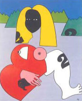 He graduated in Civil Engineering at IST. In 1958, he took up painting and drawing classes with Teresa de Sousa and Gil Teixeira Lopes, and a printing course at SCGP. Between 1961 and 1966 he travelled through Europe and, between 1967 and 1974, he was stationed in Angola serving with the arm. Nevertheless he became entangled with the international aesthetic propensities of the 60s, its discourses and practices, especially the colour exuberance of pop art, which the artist would tie in with Angolan cultural archetypes. ¶ Influenced by native African art, but enhancing it with a simultaneously erudite and Western dimension, the artist was able to create a subtle alliance between the "comedy" and the "tragedy" of human life, progressively de-dramatizing his compositions until he reached the stage of centring the cultural matrix of European painting in his "motifs-series" (Kings, The Lovers, The Painter and the Model, the Circus, Sports, and Portuguese Landscapes). ¶ After moving to Antwerp in 1976, his work began to achieve international recognition, specifically with his Rubens homage series. In 1978 he created a very peculiar Alfabeto de Símbolos (Alphabet of Symbols), which became a source for formal-symbolical references. For instance, the "pseudo-sculptures" he developed in 1980, made from thick, granulated paper, would draw from that "coded vocabulary" a panoply of forms, with a noteworthy impact at a signical level. They generate a bodily synthesis with an optimistic Biomorphism in which colour has an essential compositional role. ¶ Inspired by the essentialist tendencies of Eastern spirituality, the author integrated in his oeuvre formal stereotypes from other cultures (Mexican, Japanese), always involving them in a dialogue with Western artistic contexts, from primitive art to a Picassoan modernism. ¶ In the 90s, after opening up his work to themes such as death and spiritual reflection, as well as rather Informalism - and materialism - influenced values, the artist's oeuvre was finally at the centre of national recognition, with retrospectives at the Serralves and the Gulbenkian foundations, as well as several interventions in public spaces, both abroad and at home. One of the most important events was the 2004 exhibition at the Cordoaria Nacional, at which a minutely detailed catalogue-book was published.