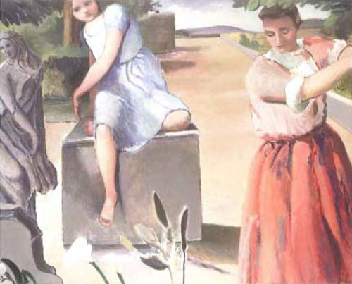 A granddaughter of general Óscar Carmona, Maria Inez Ribeiro da Fonseca began her career as a self-taught artist, having her first exhibitions at the Março Gallery in 1954. ¶ Throughout the 50s, Menez' paintings clearly revealed an influence from the School of Paris, in particular from its penchant for lyricism and poetic reverie. Although at first they were more abstract, figurativism soon became more prominent. But if there was any facet that has been ever-present in her painting, it would be luminosity, expressed through an ethereal, watery chromatism. ¶ As for the 60s, they've witnessed an opening up to pop art and oil painting, which guided Menez to object-painting or object-selecting as her main theme, at a time when she was a recipient of a Gulbenkian Foundation scholarship in London. ¶ Possessor of sensuous, sublimated lines, whether dealing with human faces or abstract surfaces, Menez embraced the creation of a luminous wholeness. Representation itself managed to achieve a spatial effect, in the sense that her paintings carried out the suggestion of placement, of depth-of-field, of an overlaying of level surfaces that remind one of different space typologies: perhaps an open space under daylight, perhaps an inhabitable closed space in the foreground with a long landscape in the background, perhaps even a stage-like space with a "trompe l'oeil" backdrop. ¶ By the end of the 70s, Menez' oeuvre entered yet a new phase. The theatrical traits of its staging and the emergence of characters became paramount, as if in a naïve revisiting of the most crystal-clear of staged fantasies. In the 80s, it would finally reach its iconographical vocation, with a stronger turn towards figurativism. Inspired mainly by the imagetics of the 18th century, Menez recreated the narrational notions of suspension and suggestion, not to mention the intimate, shrewd milieus of the time. However, Menez adds to it a disturbing, almost morbid elegance. Her characters are placed in the gardens and the interiors as signs of a lunar, disaffected presence.