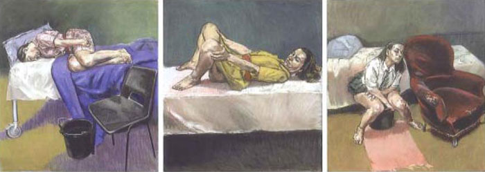 She studied at St. Julian's college in Estoril, Portugal, and in 1952 she moved to London, fleeing away from the grey days of Salazar's regime. There, she entered the Slade School of Art and later on married painter Victor Willing. She would proceed to become one of the most respected artists in both the United Kingdom and Portugal. ¶ Paula Rego's works from the 50s are quite close to realistic codes, but a certain attention to odd details and its rough, crude gesture of painting are already visible and prized, as well as a certain virulent relationship with reality that protracts her choice for a fantasy universe, which sometimes seems to be a dreadful one. ¶ In the 60s her work achieves a stronger freedom and drive. The energy explosion provided by art brut meets a new mode of expression in collage, through which the artists tamed that very same energy in a more complex manner, given the fact it allows the intertwining of multiple effects, and more systematic as well, for it implies a selection that imposes its own specific rhythm. ¶ In the early 80s Paula Rego abandons collage and resumes her technique of drawing directly on the canvas, underpinning the freshness and the immediacy of her figures, and at the same time exercising a very peculiar mode of composition, in a carrousel-like deportment that make her paintings more and more lofty, but at the same time almost giddy. The main trait of this phase is the multiplication of characters and actions that fill up the canvas. ¶ In the middle of that decade, the author began another phase, in which the narrative became more rigorous, instead of the previous dispersion. Her new paintings, presenting a unity of time and space, not to mention a unity of action, became more dense, weighty, and more painting-like, discarding thus their prior more graphic nature. In the same way, they became more committed to the bodies' volume and the perspective of the surrounding spaces. ¶ Generally speaking, the central themes of Paula Rego's images are stories that only she knows entirely, but that are revealed to us at one particular, dramatic point, made clear by whatever the artist chooses, in any given example: the characters, the situation, or the whole scenography. ¶ Looking back on it in its entirety, we can look upon Rego's oeuvre as an obsessive exploration of the same theme: relationships as power relationships and power relationships as staged perversities.