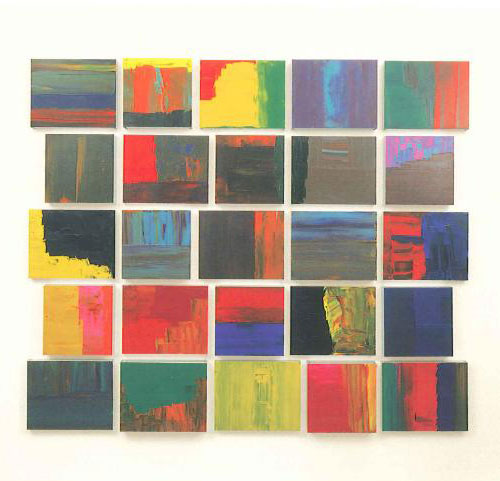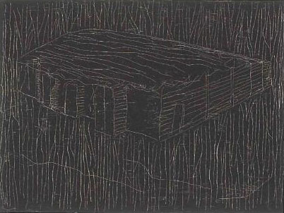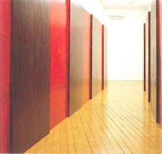 He studied at the Fine Arts School of Lisbon and become a respected painter in the first half of the 80s through exhibitions such as Depois do Modernismo and Arquipélago (After Modernism and Archipelago). Calapez chose to move away from the quoting vortex and the scatological expression that took by storm the then so-called "return to painting". Instead, he opted for a methodological rigor, in which drawing would become his crucial practice. ¶ Creating paintings by incision making, following closely the engraver's traditional methods, the artist showed a primary interest in the pictorial/architectonic approach to space. Architecture is in fact one of the categorising references for Calapez's oeuvre. However, this architecture, merely scratched over the support's surface, shows us paths, façades, and contradictory vanishing points, generating whimsical landscapes. It is an architecture that is akin to scenography, the way it piles up its elements, and the way in which its final theatrical appearance in fact implies a staging ground. But it is a residual scenography, as it were, left behind by the actors and the narrative and the drama that one past day occupied its area. ¶ Throughout the last decade, Calapez oeuvre's architectonic vocation materialized in the form of works such as Muro contra muro (Wall on Wall, 1994), in which painted panels were erected within the gallery as corridors that directly compelled one to follow a strict path and that set up the conditions of visibility for the spectator. A similar observation-controlling effect was achieved by a recent series of objects: open-ended (lid-less) cubes with painted inner walls appeared like "painting boxes" that imprisoned the space of the visible. ¶ At the same time, the artist developed yet another line of work. His concern for textures and landscape creation is manifested also by an evermore-skilful practice of abstract painting that is completely indulged in its own pleasures of paint applying and colour management. More often than not, these paintings are presented as panels, which, by gathering multiple elements in a way that they occupy a whole wall, once again establish a privileged dialogue with the space and the light that accommodate it.