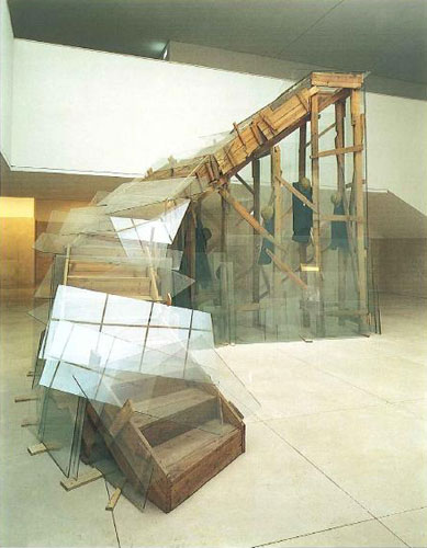 Pedro Cabrita Reis studied at the Fine Arts School of Lisbon and since the early 80s has established himself as a painter and exhibited regularly. Throughout the entire span of his career, Cabrita Reis never abandoned painting, especially if one takes into account the questioning of the geometric abstract painting traditions with which he has engaged and often revisited, in the past recent years, with his immense painting-objects that seem to converge several of the thematic lines of his whole course. He also kept up the practice of drawing, always in a figurative line of work, and with a very special commitment to self-portraits, of which he made several series. However, it is through the sculpture and installation areas of creation that Cabrita Reis would find, in the very early 90s, the path to his full-fledged national consecration and a large international recognition. This became evident through his participation in events such as Metropolis (Berlin, Germany, 1991), Documenta IX (Kassel, Germany, 1992), and the São Paulo (1994) and Venice (1997) biennials. ¶ If at the outset his work was based fundamentally on subjectivity and memory, increasingly it approached formal asceticism and minimalism. From the scenic sensibility of his late 80s work to the clinical rigour of the mid-90s, one can witness a progressive dehumanisation and a poetic and metaphoric dispossession, connected to the contrasting growing affection for architecture-like effects and grand scales. ¶ The Cidades Cegas (Blind Cities) that he began to "build" in the late 90s are not only blind, but silent as well. Resisting metaphorical readings, they elude any pigeonholing in terms of meaning. It is as if the artist has drawn a path from memory to matter. In fact, his work has always shown the physical evidence of the employed materials and construction processes. However, in its first steps, his matter seemed to be matter inhabited by metaphor, if not haunted by it. ¶ Rooting metaphysics deeply into anthropology, it was this very metaphoric condition that bridged the individual to the collective, the arbitrary to the fatidic. The devaluation of the metaphor stood for the preference for insight in the detriment of complexity. If one entered Cabrita Reis's installation created for the 2003 Venice biennial, one would notice the powerful presence of light, which came about as the precise reverse of the driving urges that had guided most of Reis's work until then and were present at other installations, such as Contra a Claridade (Against Clarity, done years before, in 1994, for the CAMJAP).
